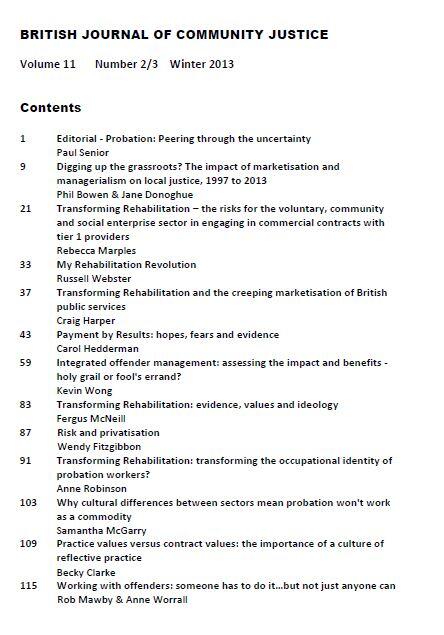 "Such is the gravity and rush to change encapsulated in the Government's Transforming Rehabilitation proposals that the British Journal of Community Justice decided that the next issue would be entirely dedicated to comments on Transforming Rehabilitation.