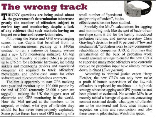 DeleteI agree - super blog and well done to Private Eye - it seems to me the evidence of this business model being all wrong - is all around. I fear for my friends and colleagues in CRC's are it sounds like anything negotiated by NAPO previously, is not worth a lot, if they are able to bring in their own staff as and whe they like - although I may not have read that right, but I expect nothing from this Government (MoJ) and so I shouldn't feel disappointment anymore.